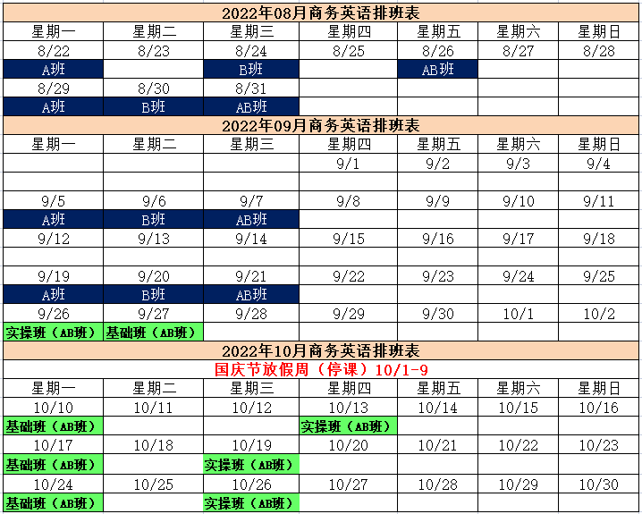 AB班每周均上一节基础课,一节实操课