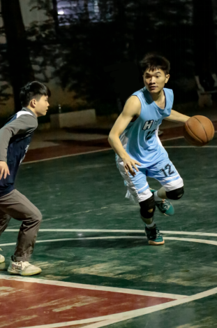 比赛中,每个队员都积极跑位,为队友作掩护,还时不时有精妙的传球、漂亮的配合和精彩的上篮。